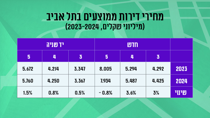 שינוי מחירים (2023 לעומת 2024): ללא שינוי במחיר דירה. עליה של כ-5% בכמות העסקאות בין התקופות.
