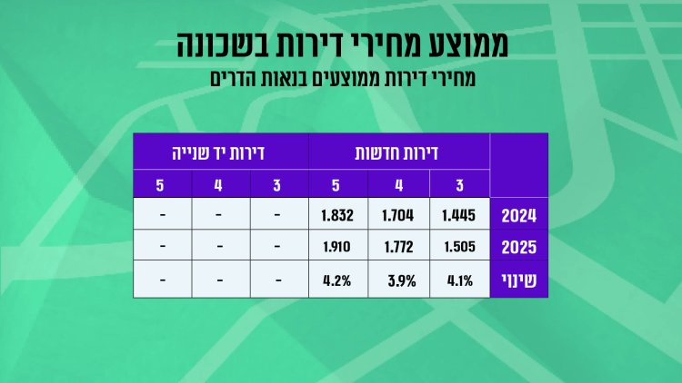 שינוי מחירים (חציון ראשון 2024 לעומת חציון ראשון 2025): עליה של כ-4% במחיר דירה. ירידה של כ-65% בכמות העסקאות בין התקופות.