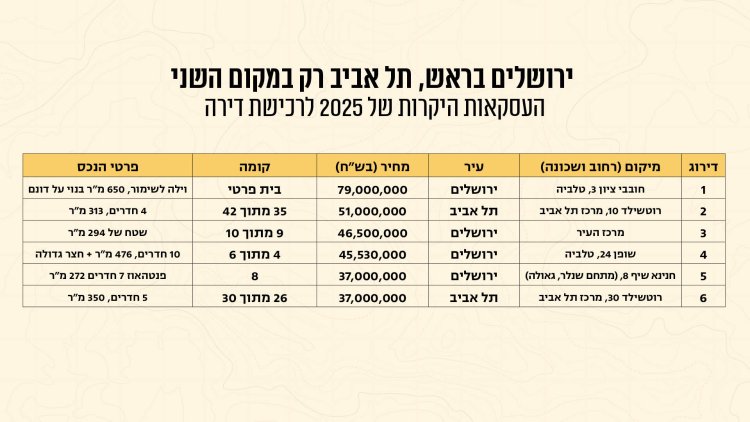 השכונה הירושלמית שהשאירה אבק לתל אביב: סיכום עסקאות היוקרה של 2025